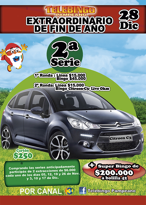 2ª Serie: 1ª Ronda : Linea $15.000 – Bingo $45.000 / 2ª Ronda: Linea $15.000 – Bingo Citroen-C3- Live Okm